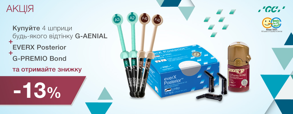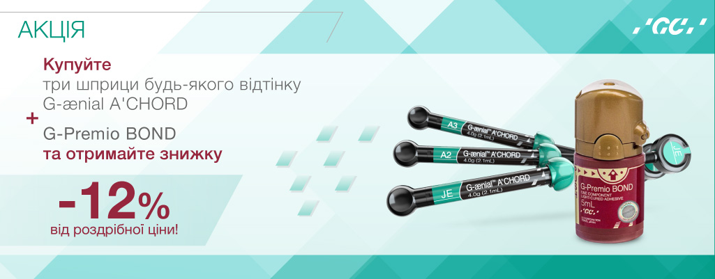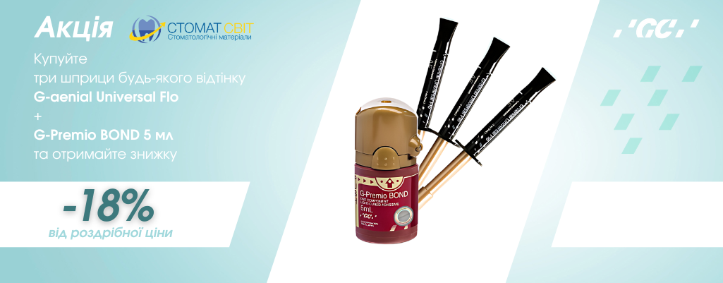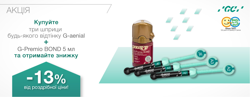 Акція на G-aenial Universal Injectable (три шприци будь-яких відтінків) + G-Premio BOND! Дізнатися більше »